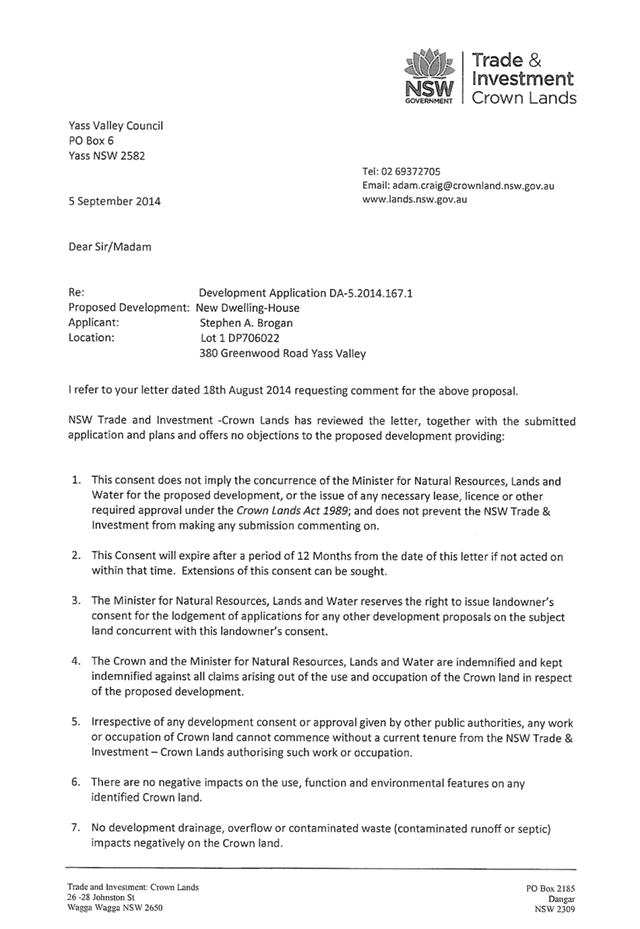 8.3 Development Applicaton No 5.2014.177.1 - Dwelling House, 380 Greenwood Road, Yass River... 54