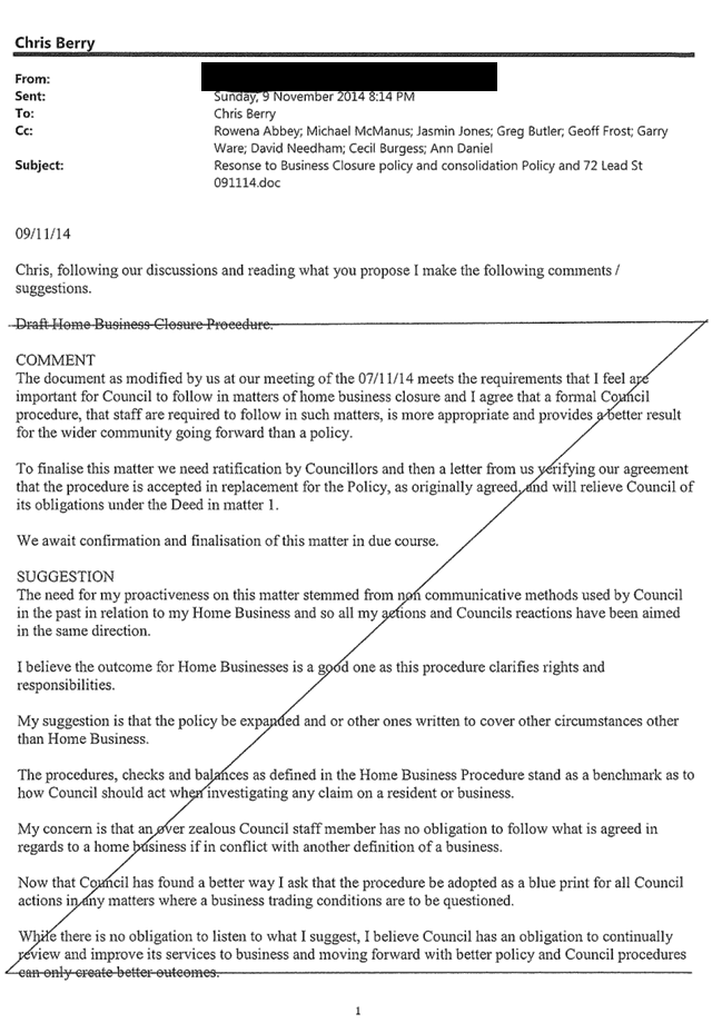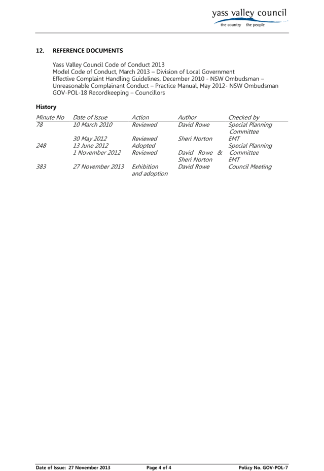 There are currently 2 Code of Conducts complaints outstanding which were considered together by the External Conduct Reviewer. The final report in relation to these complaints will be considered by Council in closed session at the February 2015 Council meeting.