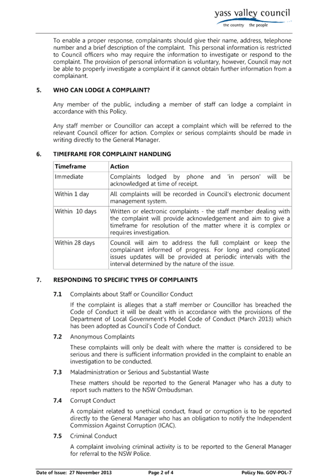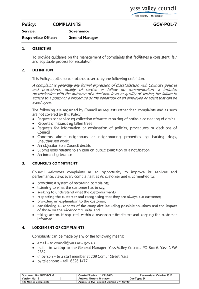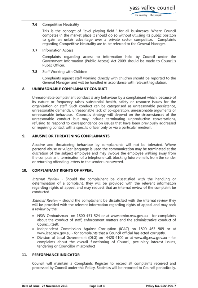 Council is required to report, by 30 November each year, to the Office of Local Government on statistics relating to Code of Conduct complaints against Councillors and the General Manager for the period 1 September to 31 August. For the year to 31 August 2014 eight such complaints were received, seven against Councillors and one against the General Manager.