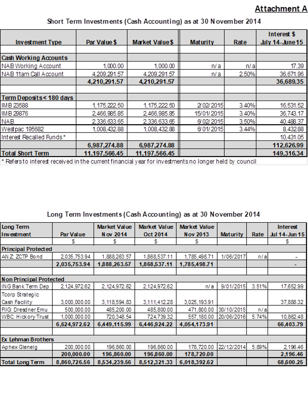 A number of Council’s investments have complex factors involved in the calculation of interest (excluding term deposits and cash accounts). The information shown below forms only part of the interest calculation and should be taken as an indication of the relevant interest rate only. Further information, including any contingencies, is held in Financial Management and can be made available on request.