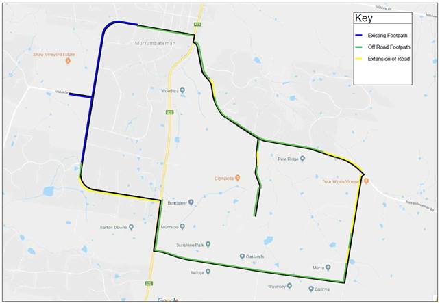 The project will deliver the construction of 12.71 kms of standalone footpaths and extension of road shoulders that will connect the village of Murrumbateman including retail and accommodation outlets with seven cellar doors providing much needed tourism infrastructure that will remain available for the local community use 365 days PA.
