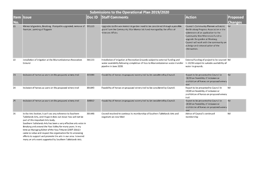 RESOLVED that : 1. The terms of reference for the Public Art Committee be amended to focus on evaluating public art projects. 2. The Public Art Committee become a focus group meeting on an as needs basis. 3. A new Memorandum of Understanding (MoU) be entered into with Southern Tablelands Arts with the contributions to be negotiated, based on all councils moving towards a standard fee, and for the MoU to be for no more than three years (i.e. expires 30 June 2022) in line with State Government funding arrangements. (Jones/Furry) 78 |