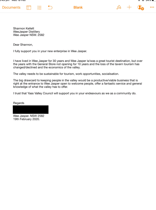 9.4 Petition - Proposed Distillery, Wee Jasper