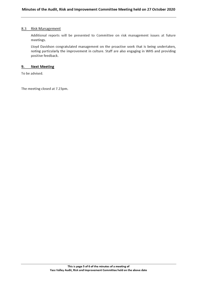 12.4 Minutes of the Audit, Risk & Improvement Committee Meeting held on 27 October 2020... 149
